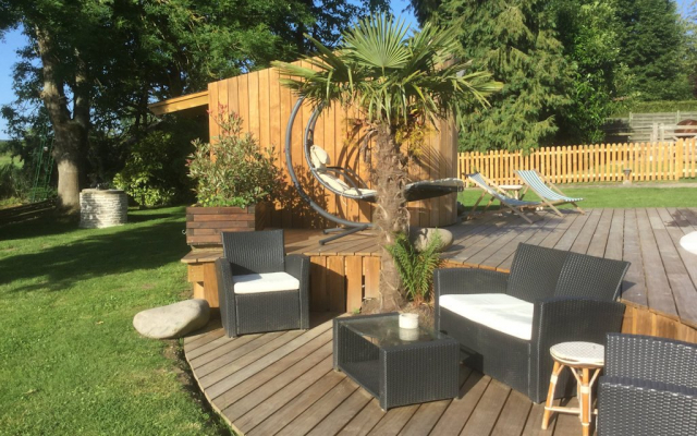Le FAR WEST face à la piscine et son jardin arboré est à votre disposition pour des moments de détente , de repos .